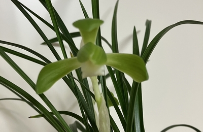 まだまだ寒い日が続いていますが、 日中は比較的暖かく日光の入る室内は 少しポカポカする日もありました。 何気なく蘭の香りがするので、もしや と見てみると、春蘭が開花していました。 無銘花ですが、澄んだ緑色の花弁と純白 の舌がなんともいえません。 他の鉢の春蘭達はまだ、冬眠中のようです。 しばらくは、この素心花 一鉢をゆっくり 楽しみたいと思います。
