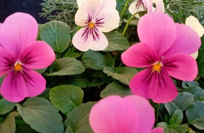 いちごミルクというのかブルーベリーシェイクというのか。 この色がたまらなくて、本当にお気に入りです。 後ろでわさわさしているのはローダンセマム・エルフピンク。 一緒に咲く季節が待ち遠しい!!少女鉢になる予定です。 ハンギングにしている他のビオラたちもいい香りがして…♡ はちみつの香りがして癒やされます。 そういえば、バラとビオラはちょうど季節がずれてるからいいですね。