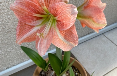 今年もアマリリスが咲きました。 4つのお花。 ミニバラ。ゼラニウムも。 ディコンドラは綺麗にグランドカバーになっています。