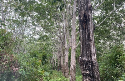 我が家の裏山にゴムの木が栽培されています。幹に斜めにキズをつけて樹液を採集します。ゴム林はマレー半島でも広く栽培されているので見慣れているつもりでしたが、実は私、よく考えるとゴム林の中に入るのはこれが初めてです。 小さなコップに溜まった樹液が固まったものがラテックスでこれを集めて仲買人に売り渡します。雨季なのでコップの中に雨水が溜まっています。これでは品質が低下するので雨の日は採集しないとのこと。…