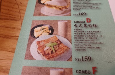 台湾とタイではホテルの朝食は付けないに限る。 何故ならどちらの国も朝食外食文化というものが根付いている。 ホテルの画一的な朝食はパスし、安くて美味しい地元に根差したローカルレストランでローカルフードを食べる方が遥かに良い。 ホテル近辺をうろうろして、小綺麗で良さげな店を見つけて入る。 甘妹弄堂。 店名からは何の店だかサッパリ分からない。 単品もいろいろとあるけど、モーニングセットメニューのDにしま…