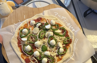 何もしていない休日です☺︎ 何もしないと決めたのに夕方になってから何もしてない…とテンション⤵︎⤵︎はあるあるですよね😅 そんな時は手軽に自分の機嫌をとりましょう。 わたしの中の手軽の範囲は家から出ないこと‼︎ 冷蔵庫を覗いたらなんとなくピザが作れそうだったのでピザ作りを始めることにしました✌︎ トマトもバジルもないけどね…(笑) 【材料】 強力粉100g オリーブオイル🫒2g 砂糖3g ドライイ…