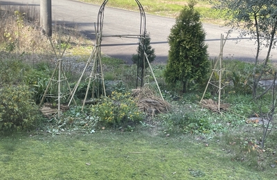 雪国は庭木の囲いが必要です(^_^;) 宿根草たちは、地際でカットします。 まだ咲いていたチョコレートコスモス。 捨てるものもったいないので部屋に飾りました。 蕾もかわいいです(*^_^*) 雪がすごくて。 家庭用のロータリーで除雪するため、雪をとばすところには植木も制限がかかり(^_^;) 思うようにガーデニングできません(T_T) でもでも冬の雪国の暮らしを、春を待ち待ち、していくしかないので…