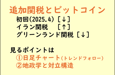 このブログでは、短期トレードをテーマにして記事を投稿しています。 この記事では、「トランプ関税はビットコインに上昇下落のどちらの影響を与えるか」を深掘りしています。買いと売りのどちらのポジションをとれば優位性があるのかを整理します。 1回目のトランプ関税(2025年4月) イラン関税(2026年1月) グリーンランド関税(2026年1月) それぞれの時の値動きのチャートを載せています。 今の時点で…