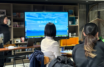 PORTERS YAIZUにて、2拠点生活に興味がある人たちが集まりました。4社の地元の企業も参加して自社をPR。2拠点生活の生活拠点として焼津を選んでいただく際の参考していただければということで。サンロフトももちろん参加。あゆみさんが企業紹介プレゼンをしてくれました。 個別に質疑応答対応してくれたのは川田君。2人ともお疲れさまでした。土曜日なのにありがとう。 参加者は8名だったかな。 焼津の旧港…