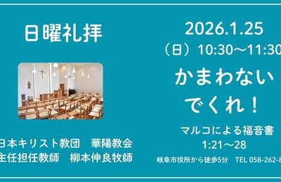 日曜礼拝 2026年1月25日 www.youtube.com 説 明 案 内 前 奏 招 詞 讃美歌 お祈り 聖 書 交読文 讃美歌 メッセージ 讃美歌 使徒信条 紹 介 とりなし 主の祈り 聖句と主題 年間聖句 年間主題 献 金 献金の祈り(例) 讃美歌 讃美歌 祝 福 派 遣 祝 福 報 告 説 明 教会にお集まりの皆さん、おはようございます。オンラインで配信を見ている方も、おはようございま…