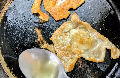 冷蔵庫のお肉が寂しくなって来たので、業務用の鶏もも肉を大量に購入しました。捌いた時点で時間が掛かってしまいましたが、大量に鶏肉を購入するなんて滅多に無いですから、ついでに鶏油(チーユ)も作ることに。 フライパンに鶏皮を入れて焼き、油をすくい上げていくだけなのですが、とにかく数が多いから時間が掛かる! 写真のフライパンとは20年以上の付き合いなので、表面が完全に剥げていますw うーん、美しい色合い。…
