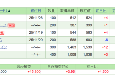 11月の決済損益:+87,296円 LIFULL:▲28,000円 システナ :▲5,000円 ラクーン :▲92,000円 オイシックス:▲4,200円 鎌倉新書 :▲700円 ネットプロ :+231,296円 日本ライフライン :▲4,000円 アニコム :▲9,100円 ゼンリン :▲1,000円 今月も試し玉を建てては切ってを繰り返しながら相場の転換を探っていました。