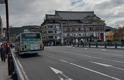 今日は、数週間振りに朝から電車を乗り継いで四条通界隈から山手まで散策して居ます。 阪急河原町駅から歩き何時もの風景、四条大橋に立ち止まり南座を展望して居ます。 今日も賑やかに南座の入口前では、入場客で溢れ返って居ます。 玄関前に立て掛けて居る案内板に目を通すと、11月から新春1月まで年内の興行予定が掲示されて居ます。 右側のポスターは、11月1日〜24日千穐楽までの興行上方喜劇まつりで、主演藤山直…