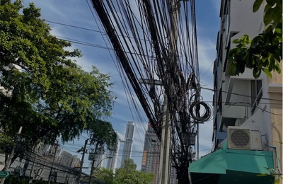 思い出投稿🐾 2022.10.26 エカマイの駅前にある寺院🛕 ワット.タートンを目指します🚶♀️ 歩いていて目に付くのは電線の多さです。上を見上げると、何本物の電線が無造作にありちょっと怖い感じがしました。周りを見ると、こんな感じでタイ🇹🇭歩道は凸凹で昨日はスーツケースを押してホテルまで歩いたけど、コロコロとは行かず、持ち上げたり、ゴロゴロしたりととっても大変でした😅ホテルまでとても時間がかか…