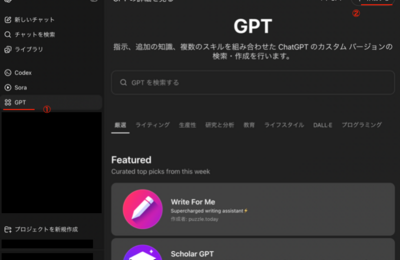 ホーム AIトレンド ChatGPTカスタマイズ完全ガイド:マイGPT×プロジェクト×メモリの使い方 ChatGPT をチャットベースで利用する際、マイGPT(MyGPTs)・プロジェクト・メモリの3つの機能が重要な役割を果たします。これらを活用することで、ChatGPT を自分専属のコンサルタントに近づけ、幅広いニーズに合わせた使い方が可能になります。 目次 マイGPT(MyGPTs)とは?〜自…