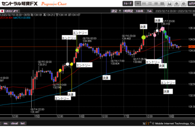 2023.05.02 (Tue) GBP / JPY (15分足) ・長期足で見て上昇トレンド ・レンジを上に抜けて 直近の最高値(172.10)を超えたら買いで入る 14:02 成り行き決済 / 買 / 172.194 OCO 利食い / 173.215 OCO 損切り / 171.421 直近の高/安値から10 pips (0.1円 = 10銭) 離したところに損切り 14:36 / 171.…