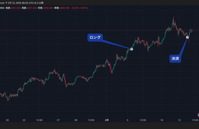 XAU/USD 1時間足チャート XAU/USD 1時間足チャート ズームアウト 2845.11 ロング 2880.00 決済 (+348.9pips 利確) エントリー 上昇トレンド中の横ばいでエントリー。トレンド転換のサインがなく、上昇のモメンタムも十分ある。損切りは前回安値の下。 ※ エントリー当時の2月5日時点では、前回のトレード日誌の反省である「損切りの遅さ」に気づいていない。そこそこ上…