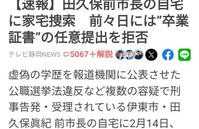 おばちゃんちにガサが入った模様 (笑)🍺(-_-メ) 昨日サウナ室でワイドショーが流れてた時は サツに 例の卒業証書を任意だか、 どうだかわかんないけど提出をしてくれと言われたのだが、 相変わらず に、 意味がわらず自分流な 勝手な 法解釈で 法律を盾に提出できないという 拒絶回答をしていたのをみた 「まだやってんですね このババア」 (笑)(-_-メ)皆で笑っていた ら、…、 今日病院💉待合室の…