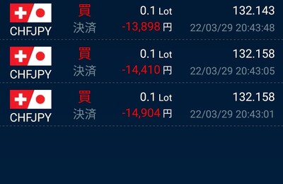 3/28〜4/2までの決済件数NZD/USD 買…2件AUD/NZD 売…3件CHF/JPY 売…3件EUR/GBP 売…0件USD/CHF 買…0件EUR/JPY 売…3件合計……11件 利益……-34503円 現在の保有ポジションNZD/USD買…6000AUD/NZD買…0AUD/NZD売…32000CHF/JPY 売…22000EUR/GBP 売…3000USD/CHF 買…3000 EU…