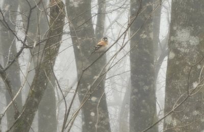 まだ芽の兆しも見えない 枝に アトリが一羽 今日(2026/2/25)は 雨降りで 空気は しっとりと 肌に優しい 小鳥達も 春の予兆を感じてる? この後 庭は もっと深い霧で 真っ白に覆われました