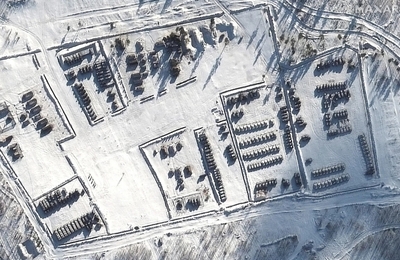 今月、ロシア南西部ヴォロネジ近郊で撮影された、ロシア軍の戦車と砲兵用テントを示す衛星画像。 (マクサー・テクノロジーズ) As West Warns of Russian Attack, Ukraine Sends Different Message 西側がロシアの攻撃を警告する中、ウクライナは異なるメッセージを発信 The ‘‘stay calm” posture has left analys…
