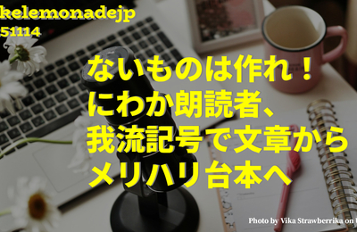 『ないものは作れ!にわか朗読者、我流記号で文章からメリハリ台本へ』のアイキャッチ画像 にわか朗読者、原稿用紙を台本にトランスフォームする 読点だって気にしない!にわか朗読者、改行でリズムを生む 老眼でも一行の情報量は守る!にわか朗読者の台本は縦書き一択 朗読は音楽のようなもの?にわか朗読者、「間」をデザインする ないなら作る!にわか朗読者、自己流記号でリズムと間を操る ルビは練習の記録:にわか朗読…