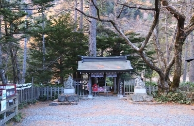 *##*115:00明神池を見学し、穂高神社奥宮をお参りして、ガイドは終了です。15:11穂高神社奥宮の入口で、ガイドのふーた君ともお別れです。せっかくなので、記念撮影。ふーた君の見立てで、母の健脚なら逆サイドの道で帰っても大丈夫とのお墨付きをもらい、ふーた君とはここでお別れ。二日目、ありがとうございました。15:21川上に向かって左サイドの道は、往きとは景色がまた違うかんじでした。詳しくは、次の…