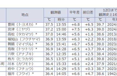 災害と災害リスク 地震情報 最高気温 最高気温 大雨・降水量によるもの 経済状況 同日の過去の災害記録 平成16年7月新潟・福島豪雨(2004年) 伊東沖海底火山噴火(1989年) 慶長伏見地震(文禄5年) 2025年7月の現在 大災害発生0件維持中 2025/07/01の記事 (噴火、地震回数:140回 ゲリラ豪雨等が頻発するも大災害にあたるようなものは無し、世界も含め各地で気温上昇) pred…
