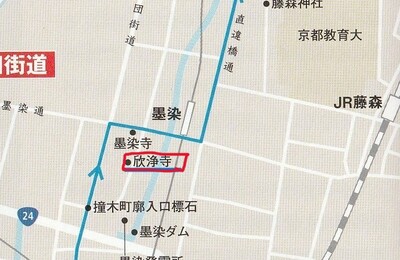 前回の墨染寺は墨染通から入りますが、今回の欣浄寺(ゴンジョウジ)は師団街道から入りますので、一応伏見街道は青線として行くことにしました。 欣浄寺は1200年代に道元禅師が創建した真言宗の寺(道元は曹洞宗の宗祖なのでちょっと不思議)でしたが、応仁の乱後は曹洞宗になり、戦国時代には浄土宗に改められ、江戸時代にもとの曹洞宗に改宗しています。 何と言ってもこの寺には、「伏見の大仏」と呼ばれてた丈六の…