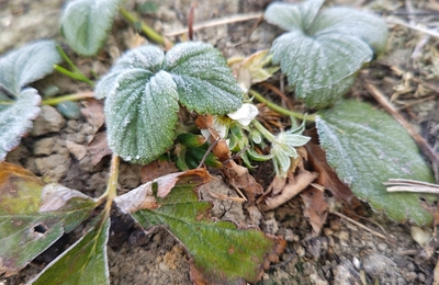 暖かい日が続いたので路地物で蔓を伸ばそうと植えたのに花が付いた。 iいつもは簡易温室の中では今頃花が付くのだけれど露地で付くとわ、 このところの気象迷うことばかり。 先週の日曜日は雪だった。山茶花に積もって綺麗だった。
