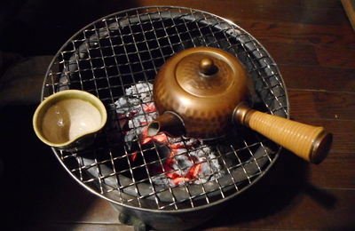 雪が降ると熱燗飲みたくなる、仲間がいれば徳利になるんだが、ちゃんとしたお銚子でもあればいいんだろうが今はこの急須が気に入ってる。火鉢の燠でやんわり温まったお酒は最高だ。