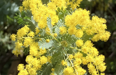「ミモザ咲き始めました」のお知らせに 早速行ってみると 中々良い感じに 枝垂れておりました❀ 枝によりまだこれからであったりしつつ 見学の方々がチラホラ 神社の屋根に特徴あり そして着物姿のインバウンド様到着 女子はバックに唐傘 男子は片手にスマホ片手に刀 社殿前で黒サングラスに唐傘さした女子の 写真撮りまくっておりました(*^^)v