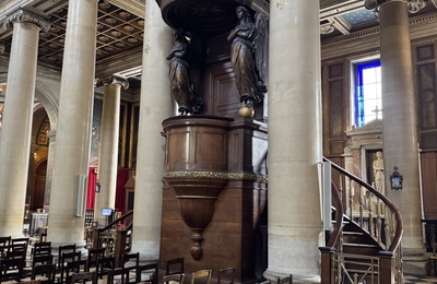 前回はノートルダム ド ロレット教会のエントランスから主祭壇までのお話をしました。今回はその中に含まれていた説教壇についてお話しします。 教会の説教壇 木製で巧緻性が高い 前回お話しした説教壇です。 説教壇とは、ここで聖職者が福音の解説、聖書のお話をします、道徳的神学的な説教を行うわけです。 声を教会全体に届けるために身廊側に張り出すように置かれまた天蓋や後方を囲む木の壁は拡声器の変わりをします。…
