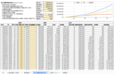当ブログでは人生収支表(人生における各制度を利用した収支のまとめ、未来の家計簿)の作成過程を記録として掲載しています。 今回の内容は「確定拠出年金シートの作成」です。 目標は以下の通りです。 ・元本を指定した想定利回りで運用した評価額の予想 ・口座管理手数料を各タイミングで除算した精緻な値での元本計算 ・残高不足により掛けられなかった場合の考慮(拠出年数が加算されない等) ・一括売却時、退職所得控…