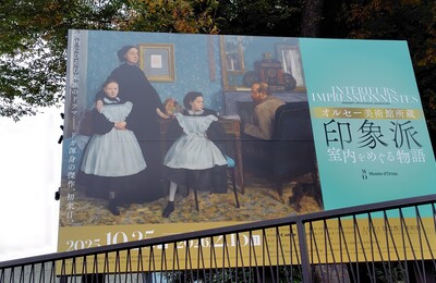 開催中のオルセー美術館所蔵印象派展を鑑賞しました。 今回は『印象派 室内をめぐる物語』がテーマです。 インドア印象派のドガ(目の病気を患い、野外での仕事ができなかった。後年、気の毒な事に失明し、絵画は諦め、彫像に向かった)や人物画が多いルノワールの作品が目立ちました。 少し撮影が許可されていますから、何点かは撮影しました。 入口辺りです。 1章 室内の肖像 《バジールのアトリエ ラ・コンダミンヌ通…