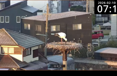 今朝は嬉しいお知らせです。 「こっちーくん631」のコウノトリの巣塔では、今年も産卵の季節がやってきました。 こっちーくん631(時計表示のある方)をクリックしてもらったらライブを見ることが出来ます。 www.youtube.com 「まだかな、まだかな」とこのところ毎日見守っていたのですが、ついに今朝、1個目の卵が産まれました。 私が確認したのは朝7:16。 中央付近、こうのとりのくちばしの下に…