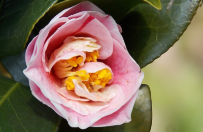身近にも、色んな椿が見られ ますね。 そして椿は種類が多い中、ち ょっと変わった種類の花が見 られました😄 薄いピンクの絞りで八重咲 だから五色八重散?の類か も・・・ こちらもまだ開花途中なので、 全部開かないと花の名前を特 定するのが難しいけれど(南 蛮紅)に似ています。 こうした少し変わった種類 を公園に植えて下さってい るって、とてもすごいし有 難いと思いました♬ 普通のよりは値段が高価で…