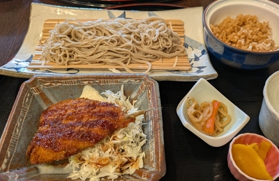 10食限定ランチ 今日の昼ごはんは、友人とランチです。 ありがたいことに、ご馳走していただき、心もお腹も満たされるひとときとなりました。 いただいたランチの内容は「アジフライ・細めのそば・混ぜごはん・干し大根の煮物・たくあん」。 魚好き、そしてそば好きなワタクシにとってはまさに理想的な組み合わせで、見た瞬間から嬉しくなる献立でした。 そばは細めで喉ごしが良く、混ぜごはんは素朴ながらも味わい深く、干…