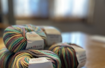 ネット内で段染め毛糸を買いました。ウール100% 太さは 4plyと書かれており、調べたら 中細程度とあったので、購入してみたら、 これは、細い。極細やわ。 毛糸だけ見て、夕焼け色になればいいなあと思ったけど、 ほんと、段染め糸は編んで繋いでみないと、わからない^^。 1枚だけ編んでみました。 使ったかぎ針は 3号。 編み図は 上の編み図の変更したところがあります。 3目くさりを作って輪にし、その…