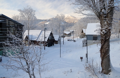 1週間雪が降らず、雪投げ作業を免れていましたが、今朝起きてみると一面の雪景色になっていました。 晴れた日の雪の朝は清々しく感じます。 目の前に見えるニセコアンヌプリは、いつの間にか真っ白になって、「雪化粧」をしていました。 木々に積もった雪が樹氷となって輝いていました。 動物の足跡がくっきりと見えていました。 私の足跡も・・・