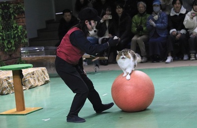 先月‐栃木県の那須動物王国へ 行って来ました 普段は展示されてる猫や鳥達 自分達の御飯代は自分達で稼いでましたw すごいでショー 猫様の玉転がしにござります~ こちらは猫様の綱渡り なんと5メートルの1本綱を 渡り切ってくれました=^_^= 猫は飽きっぽいとか気まぐれ等と 言われがちですが いえいえとんでもない ものすごい集中力でショー(拍手) 鳥様も負けてません アメリカの国鳥…ハクトウワシ こ…