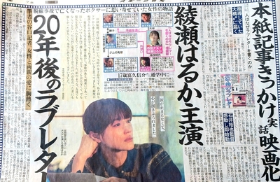記者冥利に尽きる。自らの記事が映画化されるなんてすばらしい。報知新聞・谷口隆俊記者の「20年後のラブレター」(20年5月10日付)が、きっかけ。綾瀬はるか主演で「人はなぜラブレターを書くのか」(石井裕也監督)が来春4月公開予定。そんな記事が今朝、報知新聞芸能面で掲載されていた。 発端は00年3月8日朝に発生した日比谷線脱線事故。5人が死亡、60余人が負傷する惨事だった。乗り合わせたボクサーの卵(富…