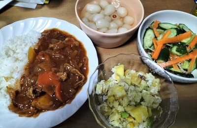 司書のご飯「おうち夜ご飯」 おうちご飯……それは貧しい司書達2人の、日々の唯一の楽しみである、食べる事の記録である。 何食べたかすぐ忘れるので、良さそうな料理だけ記録に残すよ。 最近、物忘れが酷いからね!! 【おうち夜ご飯】ハヤシライス 〜MENU〜 ・ハヤシライス ・サツマイモポテトサラダ ・きゅうりと人参とパクチーのサラダ ・らっきょう