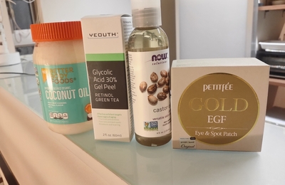 iHerbにて、 ピーリングとアイパック、ヘアオイル、ココナツオイル 日本では売ってない濃度のピーリング剤は、たぶんクリニックとかで使っている濃度のもの😉気をつけて使ってます! ヘアオイルはかなーり重め! ココナツオイルはパンケーキ焼く時に使ったり、コーヒーに混ぜたりして楽しんでます😊 友達からもらったBURT'S BEESたちとビューティブレンダー✨ メイクスポンジは違うものを使っているので、今…
