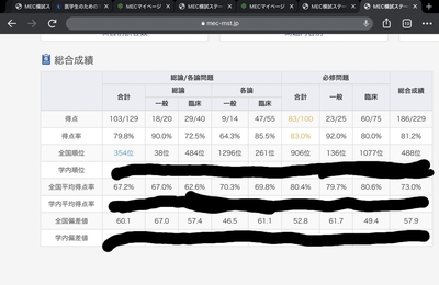 春メックが返却された。個人的にはそこそこ満足な結果だと思う。このままのペースで勉強していって合格したい。課題としては、必修の点数の低さ。臨床が低いことから、医師としての基本が暗記できていないということなので、これから復習していきたい。 また、各論の点数も低めだった。病態、治療の細かい部分を詰められていないということだろう。 分野別で言うと、内科、産婦、小児が比較的高く、マイナー、救急が低かった。後…