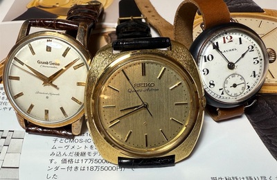 右:「ローレル」1913年(大正2年) 左:「グランドセイコー」1960年(昭和35年) 中:「クォーツアストロン」1969年(昭和44年) 2014年、日本機械学会に於いて「機械遺産」第66号として国産腕時計のセイコーより3製品が認定されました。 各々細かい説明は省きますが悪しからず。。。 それぞれ時計に詰めた技術というものが、その時代の日本の勢いを象徴するかのような逸品の腕時計です。中でも注目…