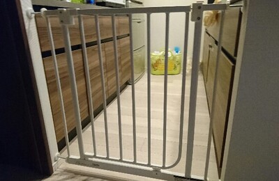 とうとう台所にベビーゲートを設置しました☆(二人がハイハイし始めて1ヶ月…遅かった気がします。) もうハイハイで毎日のように離乳食を準備している私の足元に二人がまとわり付いていて、いきなりズボンを引っ張られたり、私の足元に倒れてきたり(;´д`) いつか鍋をひっくり返したり、包丁を落としたりしそうでビクビクしてました…。 特にこの写真の奥にある緑のかごカゴにはスーパーのビニール袋がたくさん入ってい…