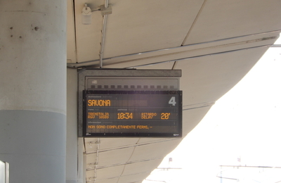 イタリアの遠出は遅延から始まる......笑 (10:34発、20分遅れを示す表示)
