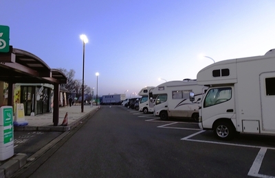 2月21日(土) 3連休の初日。 ▲ 前日泊の上信越道・小布施PA での朝 知らないうちに他のキャンカーも泊まっている。 ちと寝すぎた。 バタバタとパンを食べて出発!! 豊田飯山ICで下りて ▲ 信州飯山市・木島平へ向かう。 前方の木島平は、雲海?濃霧?が広がっていた。 ▲ ロマンスの神様スキー場(旧木島平スキー場)の中央駐車場に到着。6:30 すでに到着しているけーごさんが、ここ、ここと彼の4駆…
