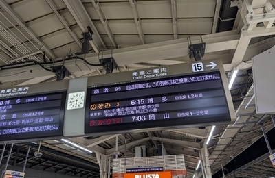 うん、東京からね。しかも鉄路で山口県突入をはかる。 「そうだ、まちじゅうエヴァンゲリオンに行こう!」と思い立ったのが2月10日なので飛行機など値段が高いので無理なのですよ。 とりあえずカジュアルに行ってしまうのが吉。 ちなみに前回宇部に行ったときもこのくらいにラフな勢いで行っています*1。 ■新山口を停車する初電の新幹線は6時15分東京発のぞみ3号博多行。それより速い初電は新山口を通過します。 ■…