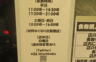 12月下旬の土曜日、個人的年末年始の9連休初日のことです。午前中まで松戸駅前店と迷って、店主さん麺上げ情報を得たこちらに。 行程の半ばまで、自然渋滞と頑なに法廷速度を遵守する大型車両に阻まれて、間に合わないかも?と不安になりながら、2時間17分を要して15時38分に到着。 少し休息を取ってから、15時50分に店頭に向かうと店内待ちの17人の列が券売機付近まで伸びていたので店外で待機。そして、16時…
