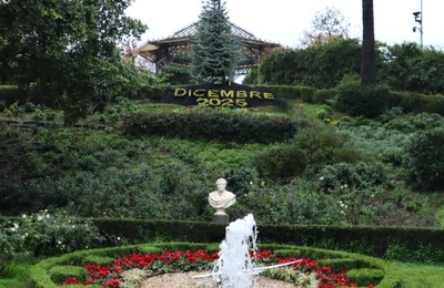 カターニア・ベッリーニ公園 時を刻む「花時計」 2025.12.21撮影 正面の丘にはその日の日付が日々、植栽で更新されている 前述した通り、カターニアに到着した翌日、ベッリーニ公園へ行きました。長旅の疲れをとるのに、この日は予定を入れていなかったのですが、ホテルからすぐの場所なので、行ってみることに。 以前カターニアに滞在した際に、「ここはやめておこう…」と、この公園の前まで来ていながら入るのを…