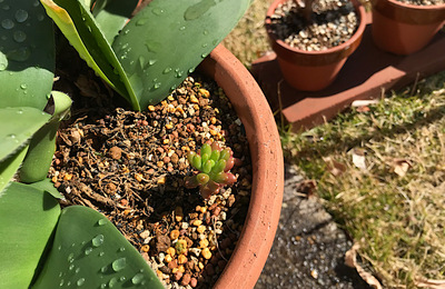 はい、このページは我が家の多肉植物のお話しです。 これはポロッと落ちた虹の玉をここに置いておいたらこうなった!という写真です。 1月のページで別の内容を書きました。↓ zun22.hatenablog.com これです。↑ これはオベサの鉢に置いておいた虹の玉について書きました。 それで今日は眉刷毛万年青(マユハケオモト)の鉢の上に置いたら、についてです。 寒い季節は紅葉する多肉です。 マクロレン…