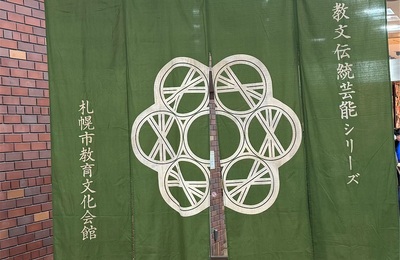 能の舞台の 夜能~語り部たちの夜~「船弁慶 後之出留之伝」を観た。能を観ることを「観能」と言うらしい。入口でもらった薄いパンフレットの裏表紙に「観能記録」を書く欄があった。このパンフレットとは別に,ロビーでは能のプログラムも販売されていた。 ↑札幌市教育文化会館大ホールの入り口に掛かっていた暖簾. 自由席の「ちょっと立ち寄り席」は2階席後方にあり,ほとんど席が埋まっている状態だった。私も「ちょっと…
